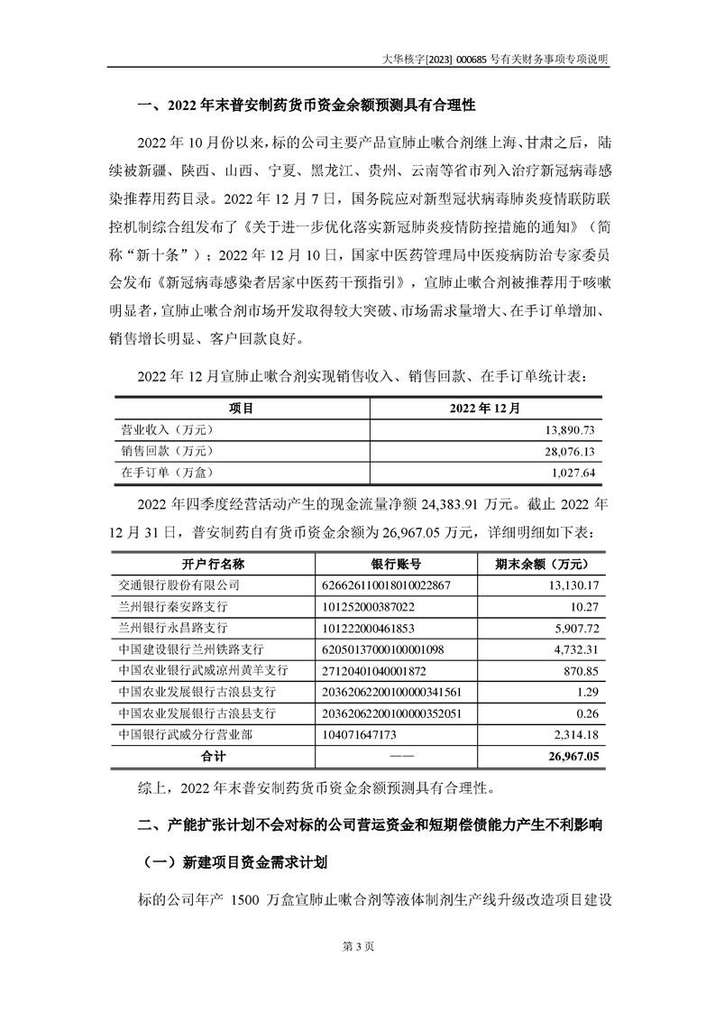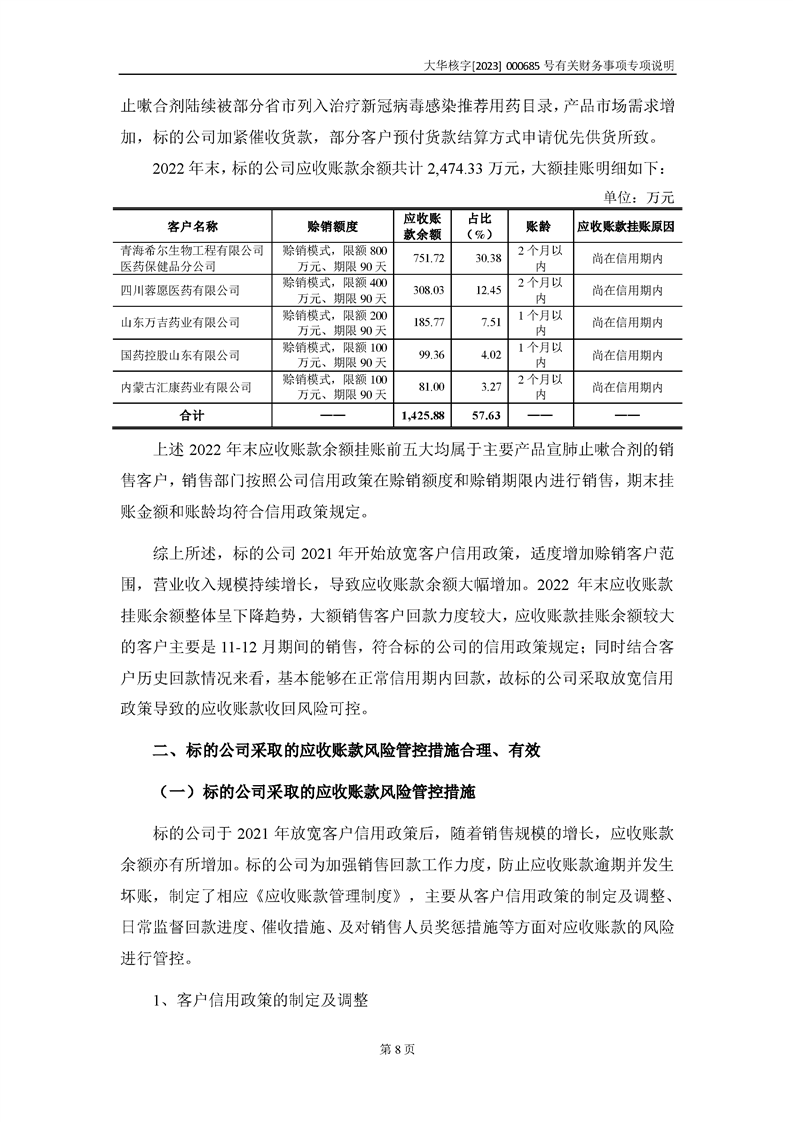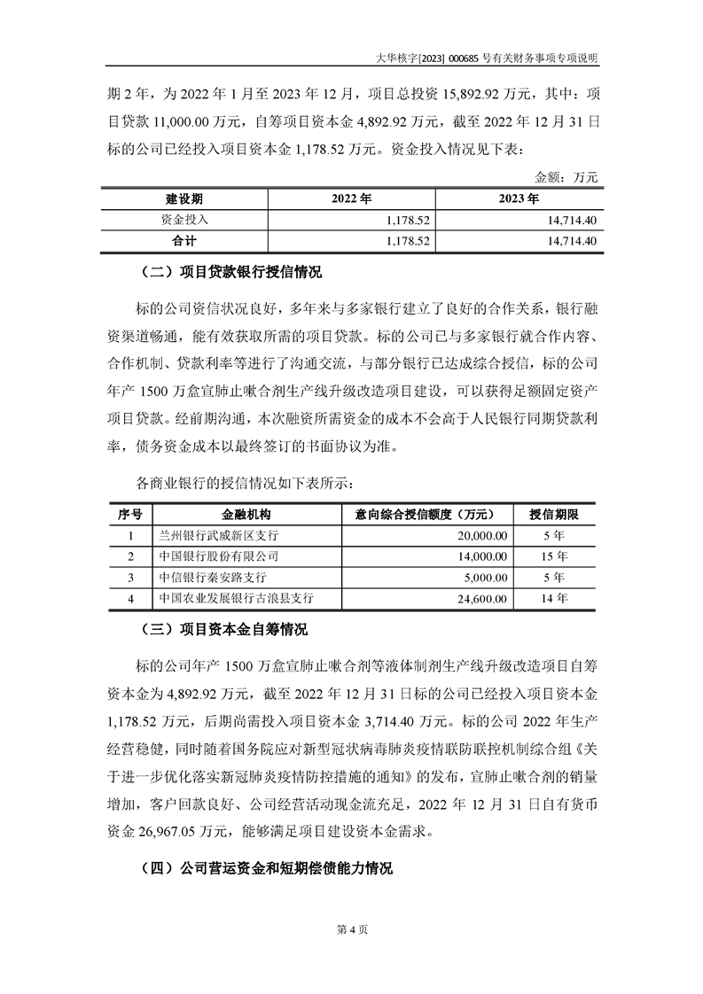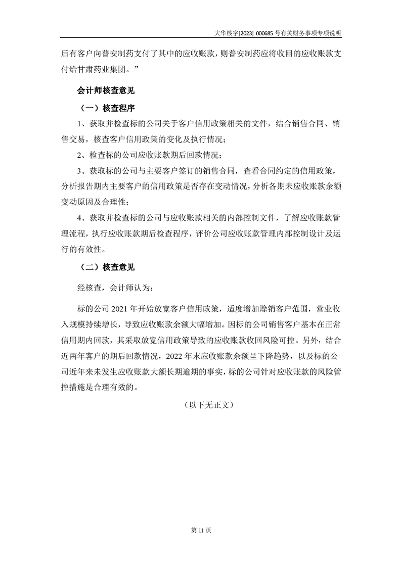 大華會計師事務(wù)所關(guān)于深圳證券交易所對甘肅隴神戎發(fā)藥業(yè)股份有限公司的重組問詢函中有關(guān)財務(wù)事項(xiàng)的專項(xiàng)說明-大華核字[2023]000685號