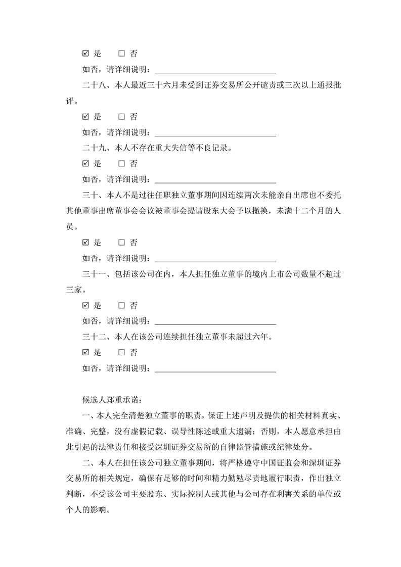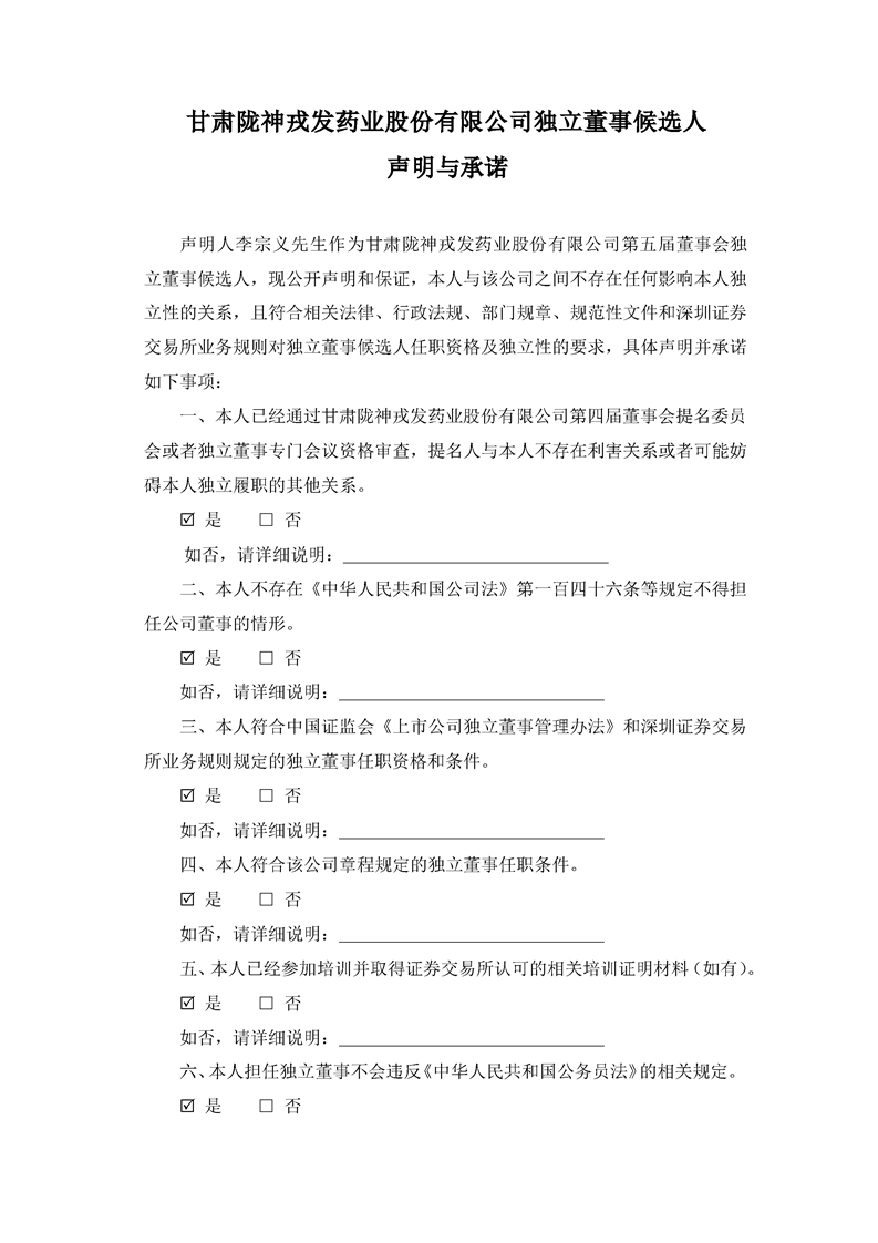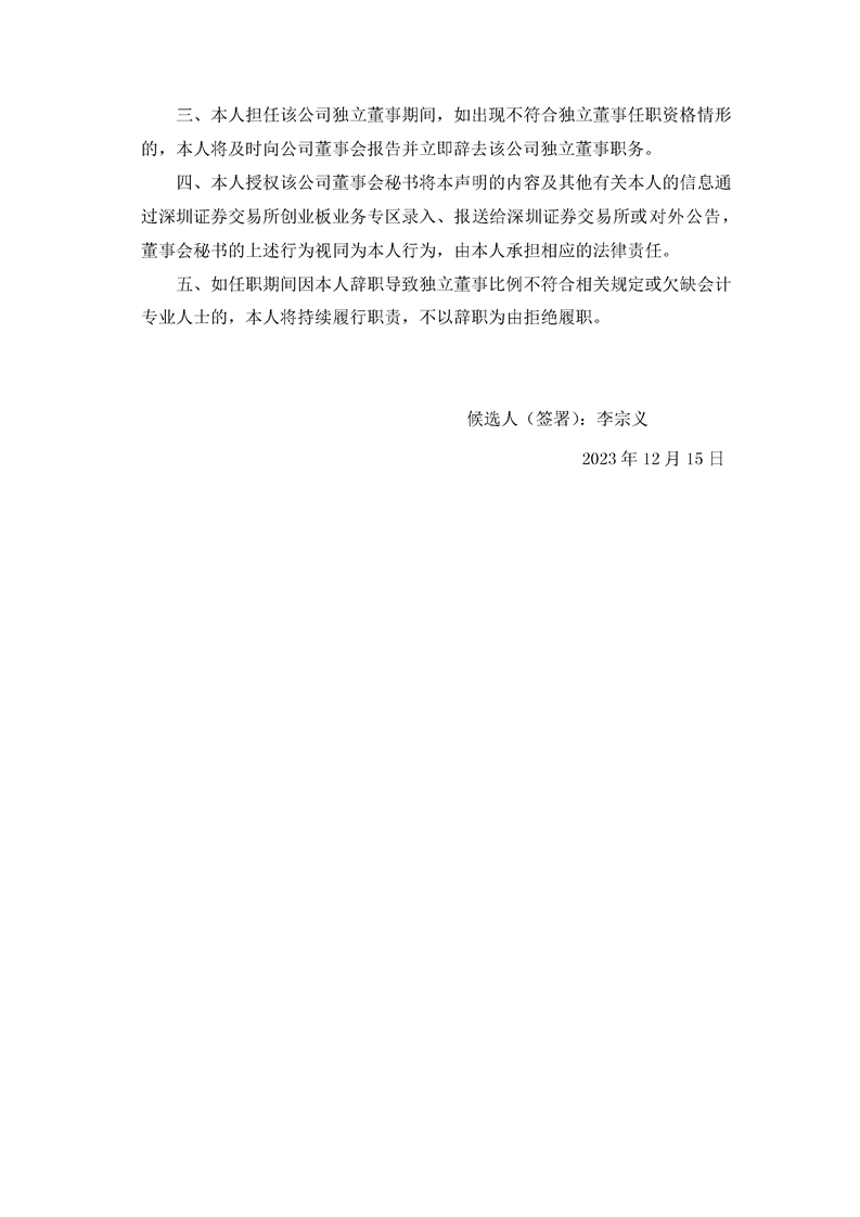 獨(dú)立董事候選人聲明與承諾(李宗義)
