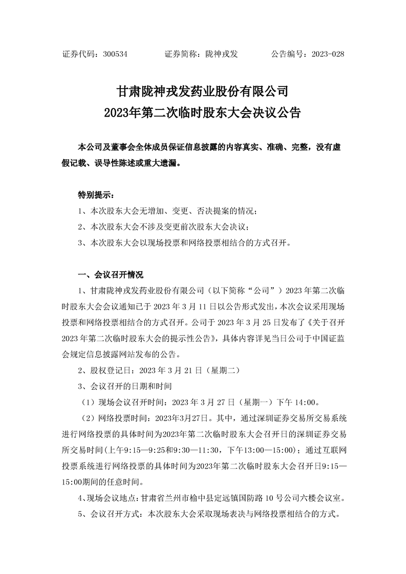 2023年第二次臨時(shí)股東大會(huì)決議公告