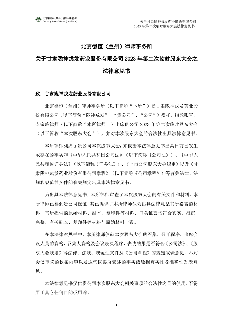 2023年第二次臨時(shí)股東大會(huì)法律意見書