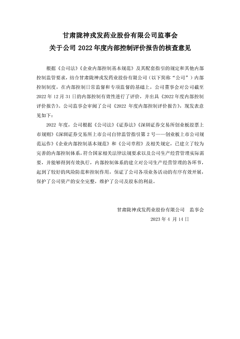 監(jiān)事會(huì)關(guān)于公司2022年度內(nèi)部控制評(píng)價(jià)報(bào)告的核查意見(jiàn)