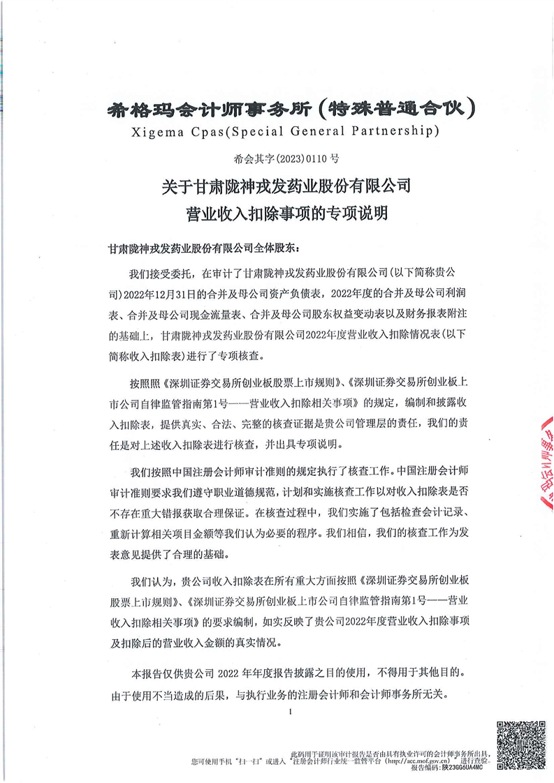 營業(yè)收入扣除事項的專項說明(更正后)