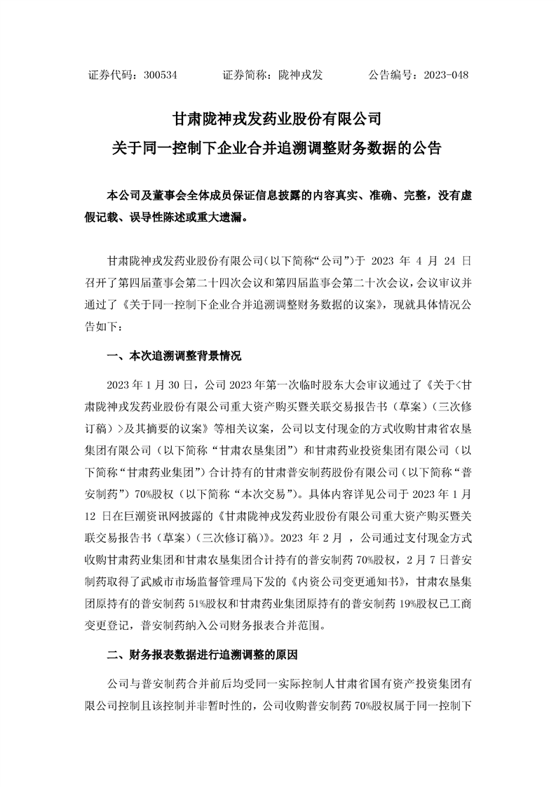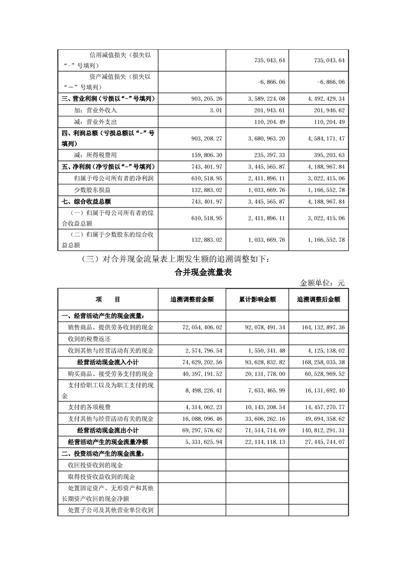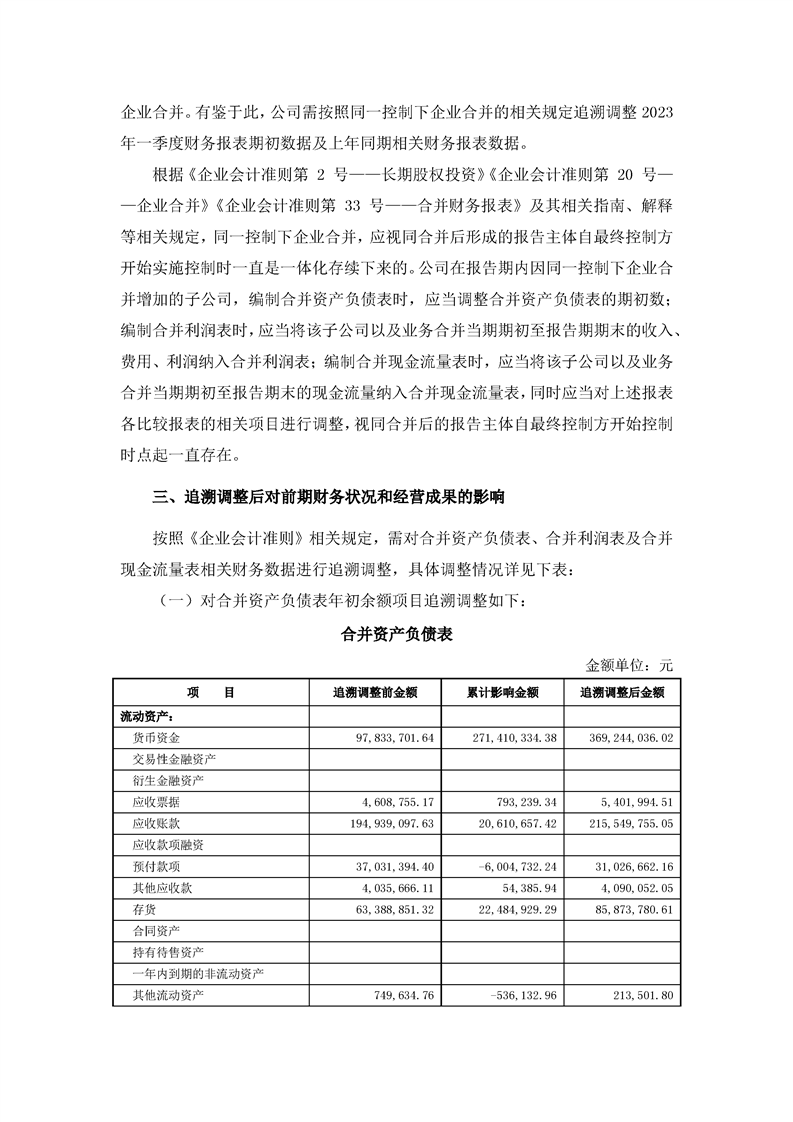 關(guān)于同一控下企業(yè)合并追溯調(diào)整財務(wù)數(shù)據(jù)的公告