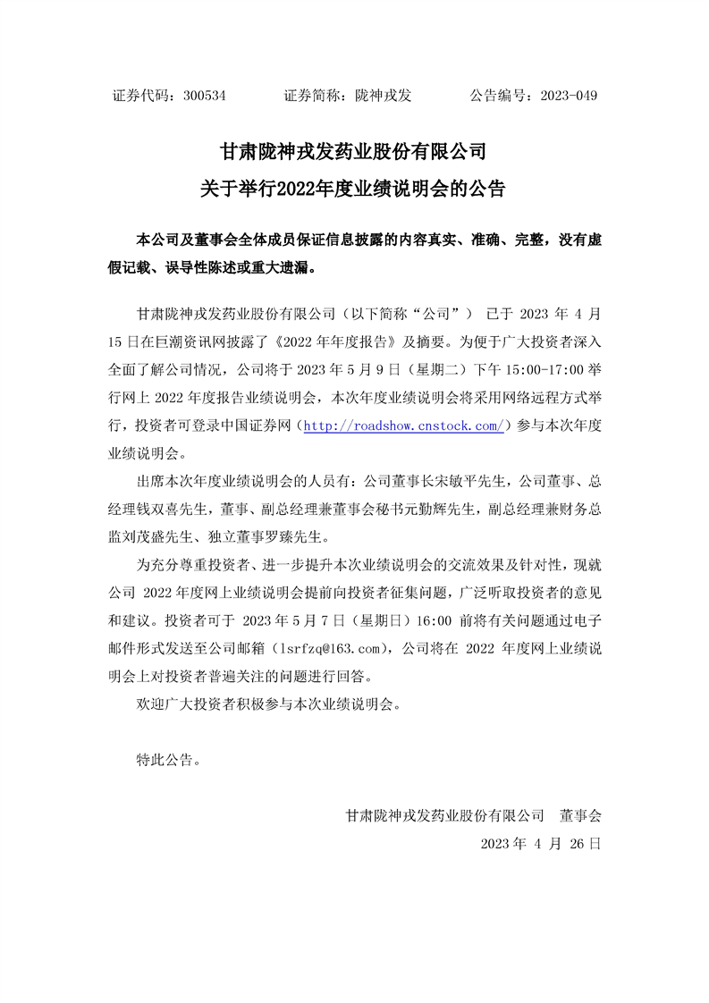 關(guān)于舉行2022年度業(yè)績說明會的公告