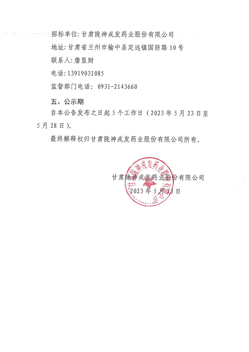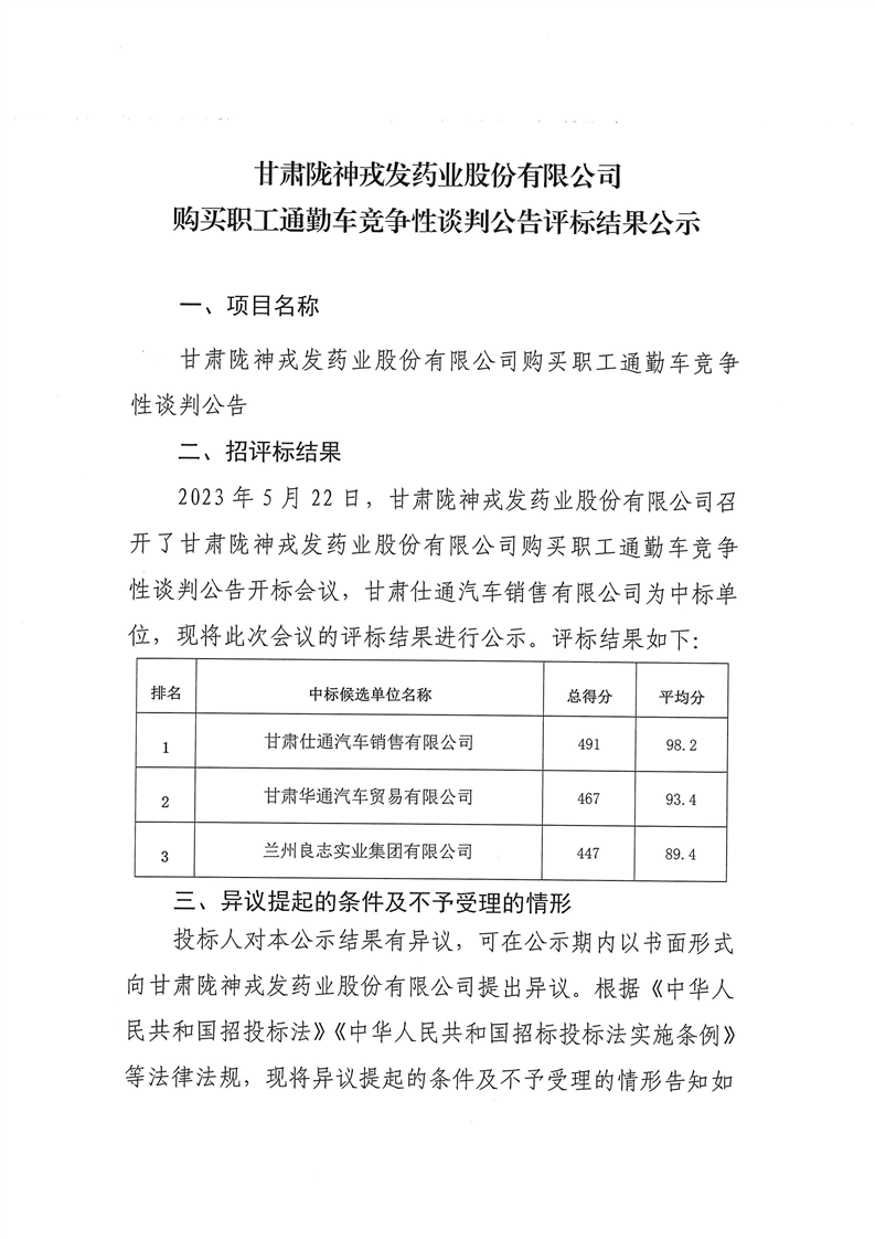 甘肅隴神戎發(fā)藥業(yè)股份有限公司購(gòu)買職工通勤車競(jìng)爭(zhēng)性談判公告評(píng)標(biāo)結(jié)果公示