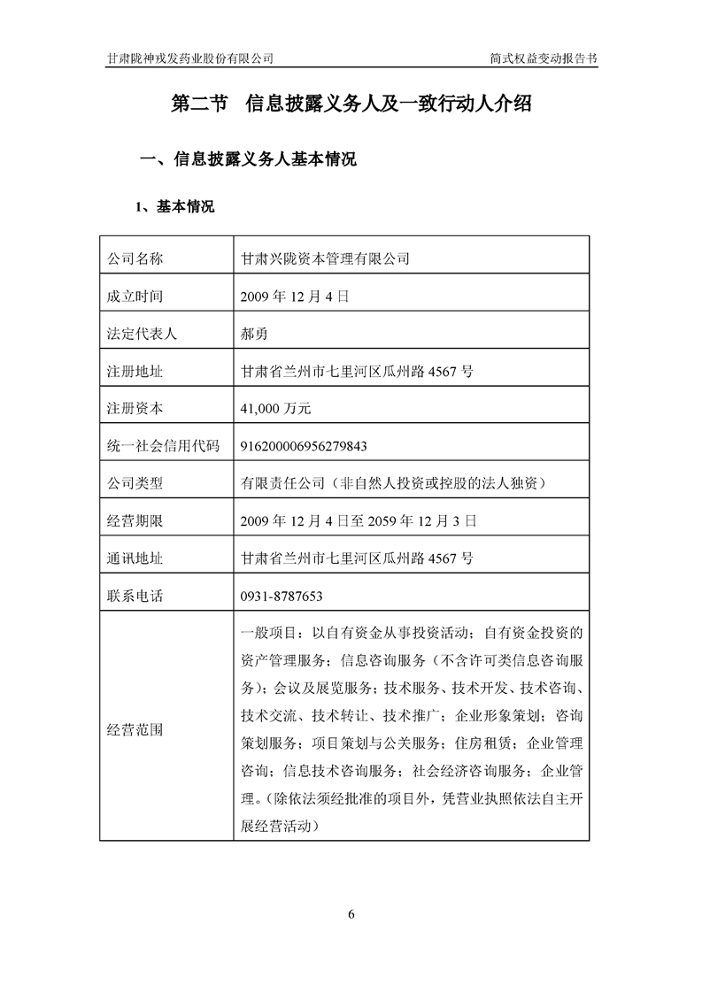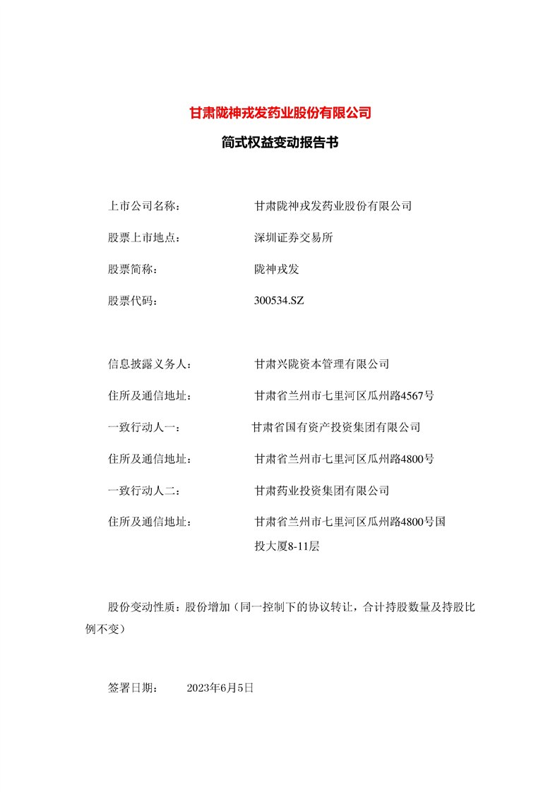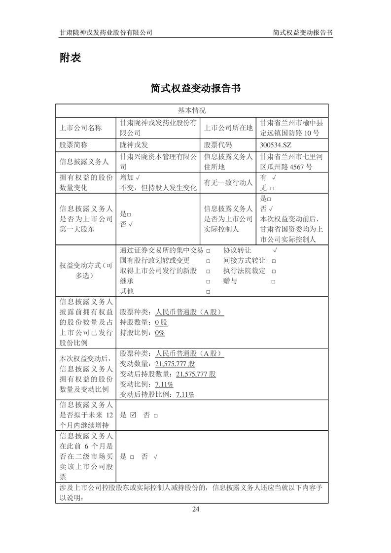 簡(jiǎn)式權(quán)益變動(dòng)報(bào)告書(shū)(興隴資本)