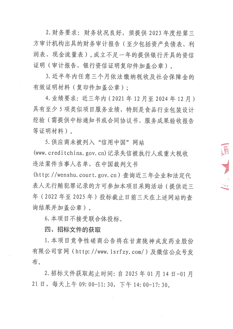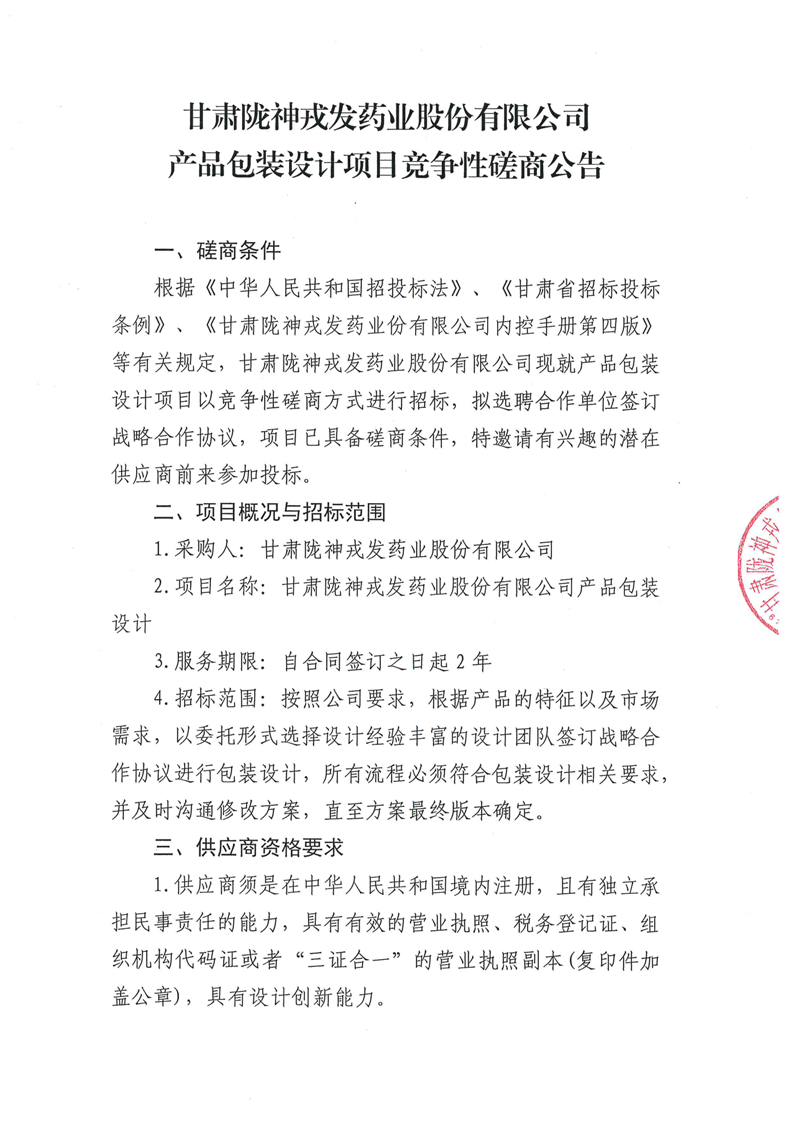 甘肅隴神戎發(fā)藥業(yè)股份有限公司產(chǎn)品包裝設計項目競爭性磋商公告