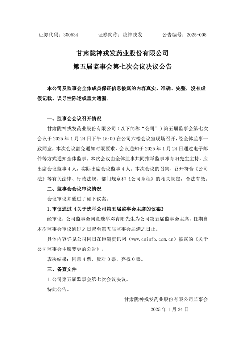 第五屆監(jiān)事會(huì)第七次會(huì)議決議公告