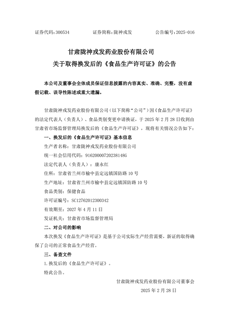 關(guān)于取得換發(fā)后的《食品生產(chǎn)許可證》的公告