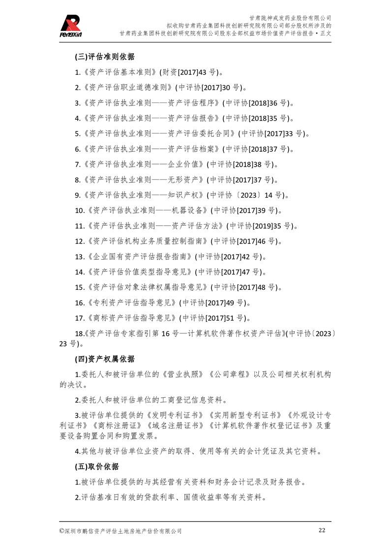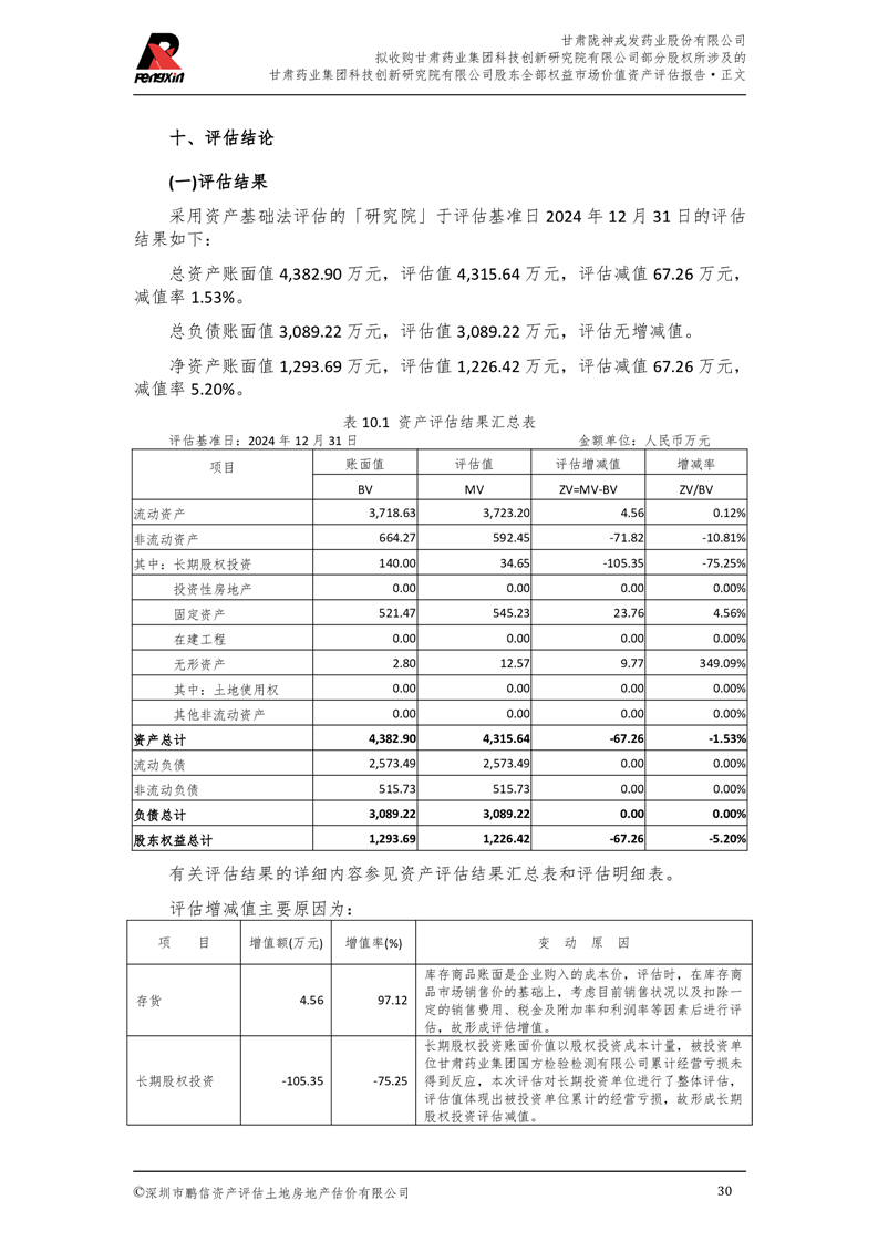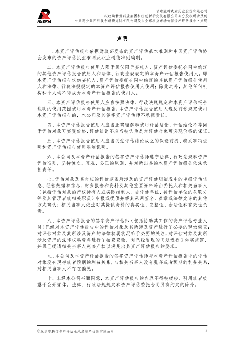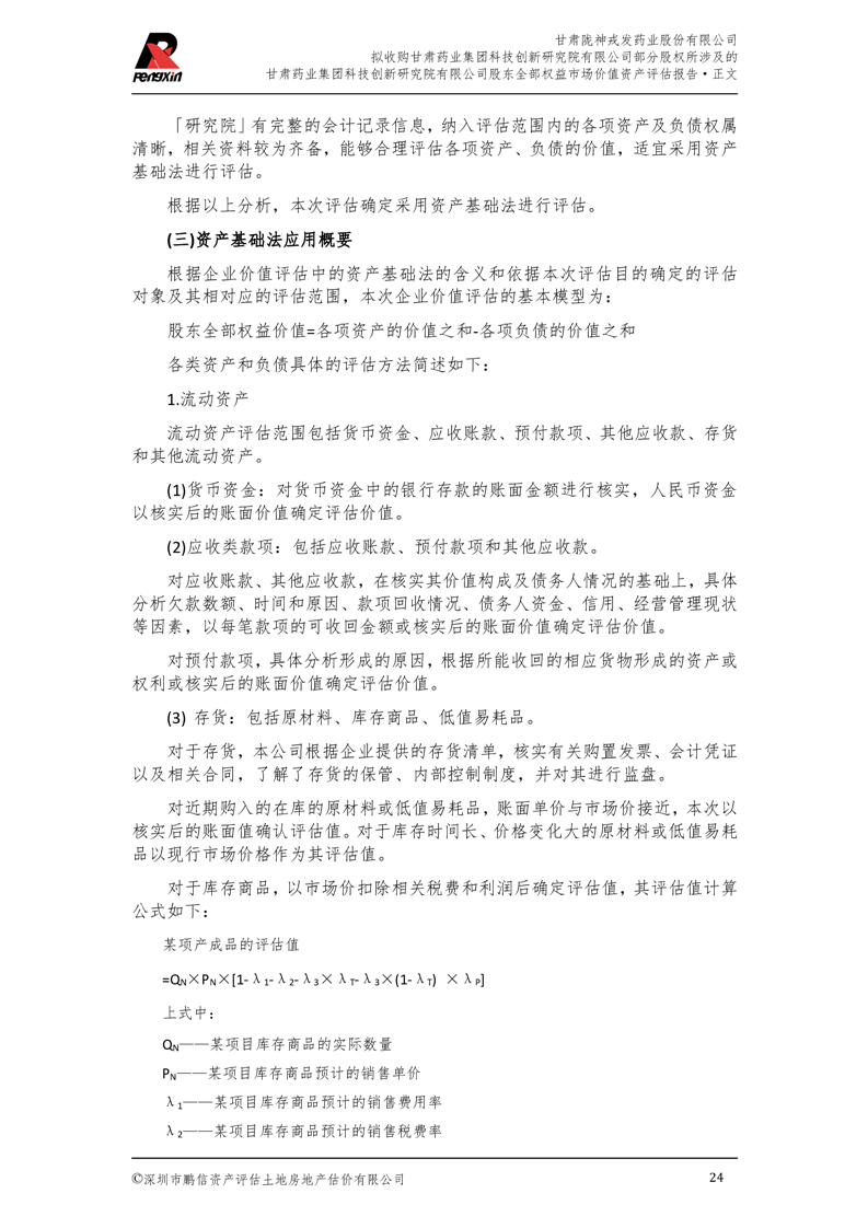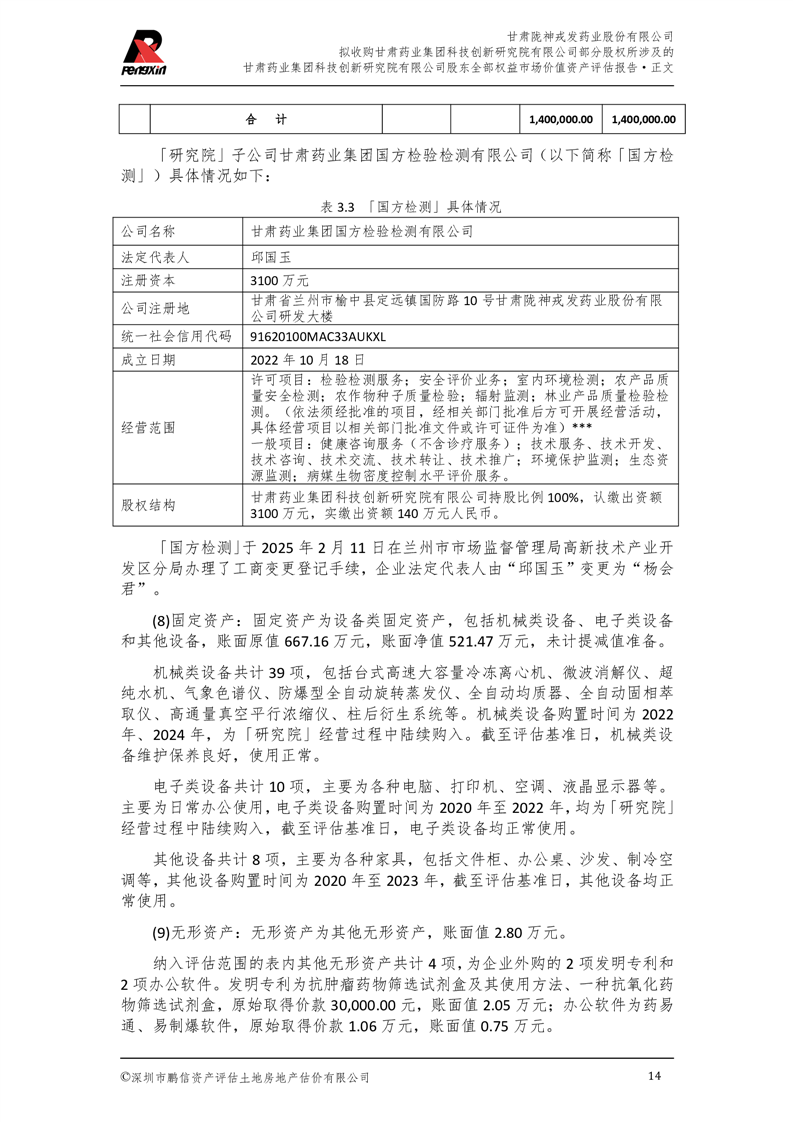 甘肅藥業(yè)集團(tuán)科技創(chuàng)新研究院有限公司股東全部權(quán)益市場(chǎng)價(jià)值資產(chǎn)評(píng)估報(bào)告(鵬信資評(píng)報(bào)字[2025]第S039號(hào))