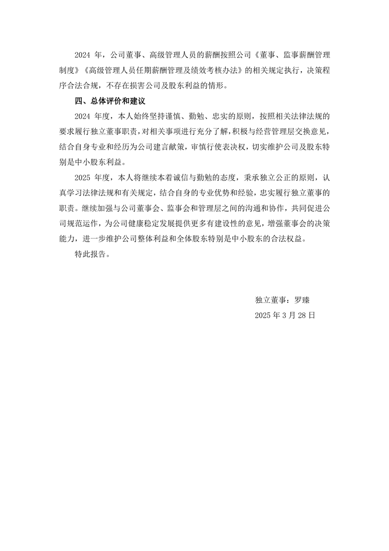 獨(dú)立董事2024年度述職報(bào)告(羅臻)