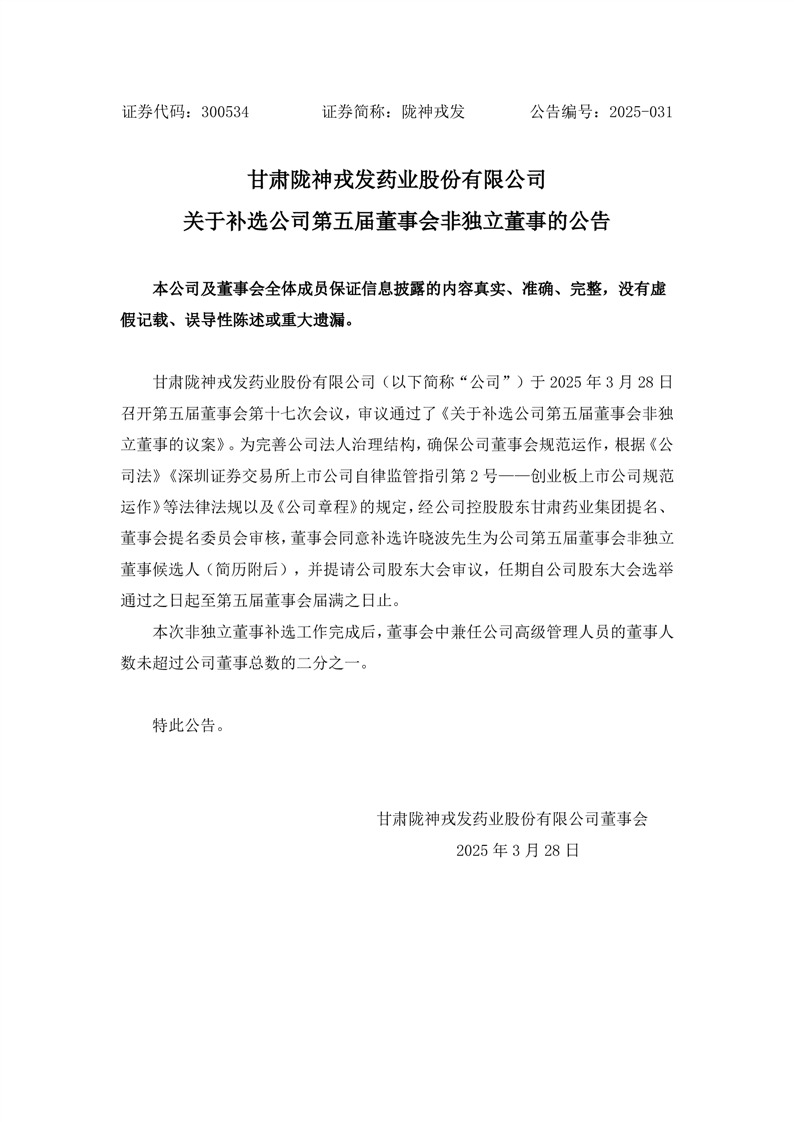 關(guān)于補(bǔ)選公司第五屆董事會(huì)非獨(dú)立董事的公告