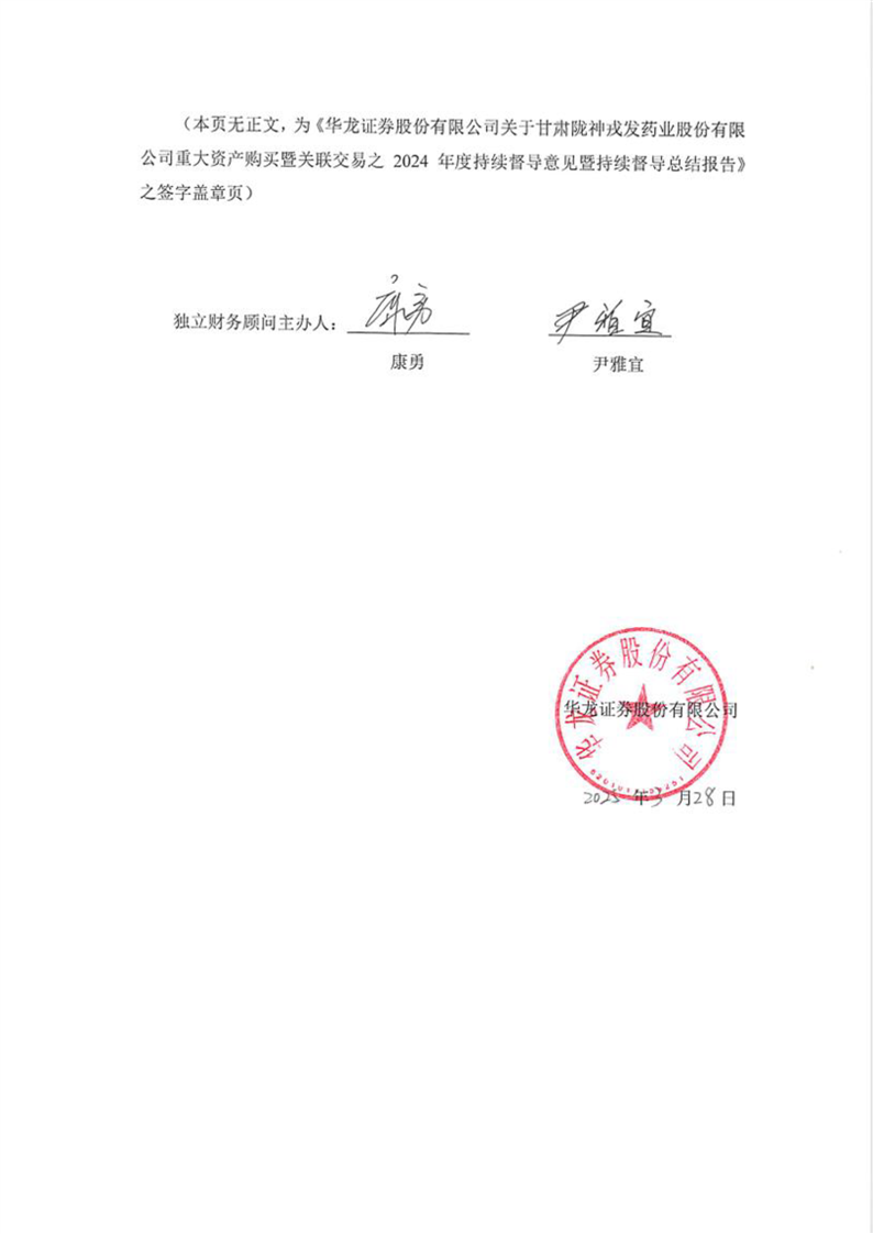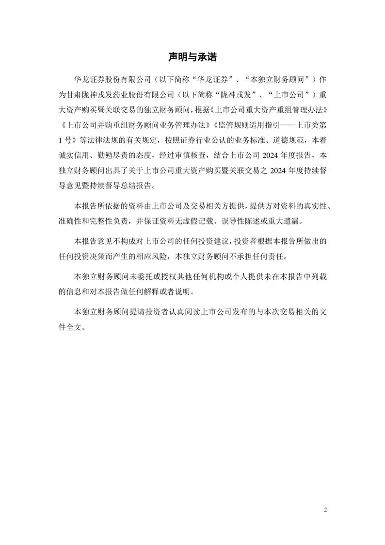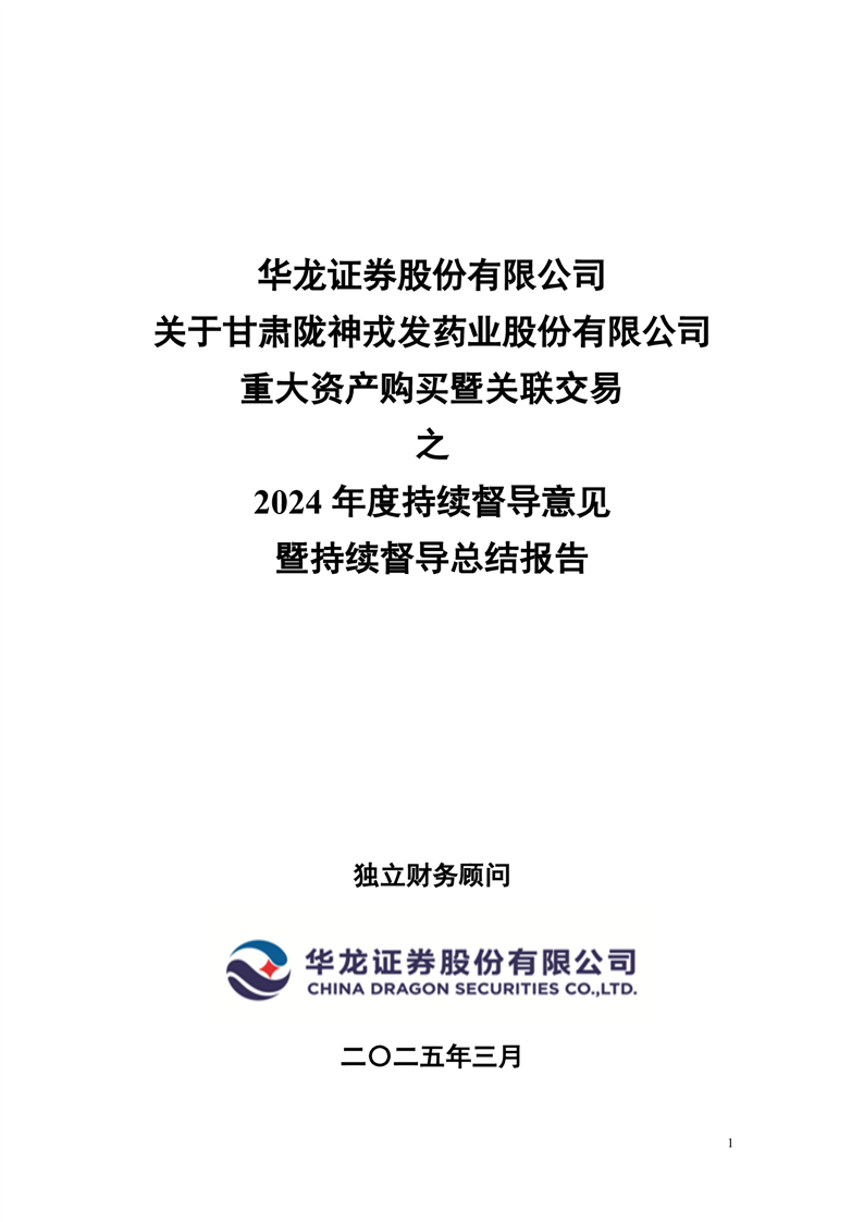 華龍證券股份有限公司關(guān)于甘肅隴神戎發(fā)藥業(yè)股份有限公司重大資產(chǎn)購(gòu)買(mǎi)暨關(guān)聯(lián)交易之2024年度持續(xù)督導(dǎo)意見(jiàn)暨持續(xù)督導(dǎo)總結(jié)報(bào)告